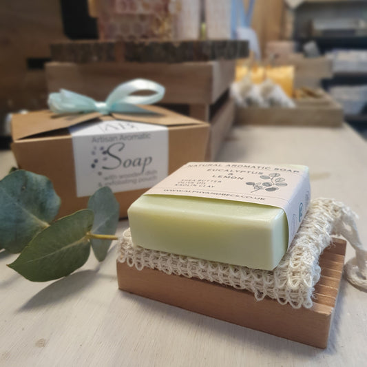 Small Gift Set - Soap with wooden dish & exfoliating pouch