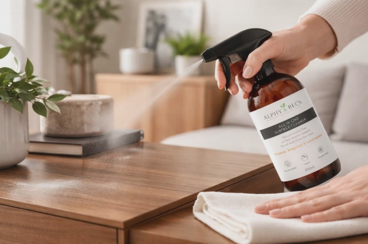 Experience a clean and fresh home with our All In One Surface Cleaner, made with pure essential oils of Orange, Bergamot, and Lemongrass. This alcohol-free formula not only effectively cleans all surfaces, but also leaves a delightful scent. Say goodbye to harsh chemicals and hello to a healthier, happier home.